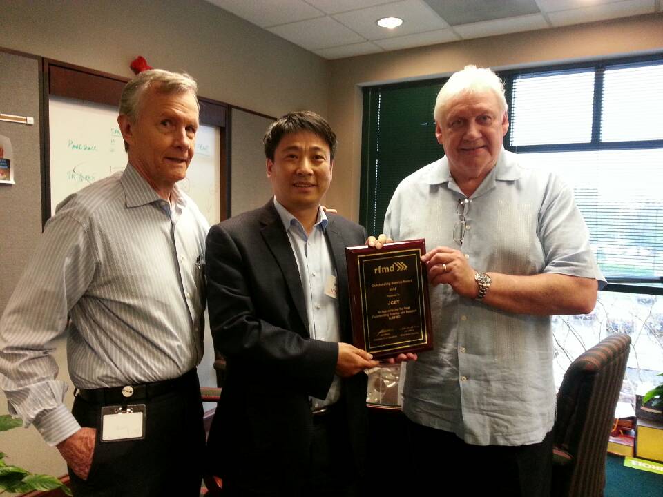 RF Micro Devices., Inc(RFMD)是一家基于设计、开发及生产射频集成电路元件的美国公司,,,,,也是第一家与我司开展基板营业的美国客户。。。。。在刚刚已往的2013年,,,,,ALLWIN·(china)集团官网依附优质的效劳,,,,,荣获了RFMD2013年度卓越效劳奖,,,,,在此次美国举行的RFMD SBR聚会上,,,,,RFMD VP Jim Stilson 和Jim Clifford为ALLWIN·(china)集团官网团队举行表扬 。。。。。Jim体现,,,,,很是谢谢ALLWIN·(china)集团官网已往一年对RFMD的鼎力大举支持,,,,,同时,,,,,期待2014年双方越发愉快的相助,,,,,配合创立更大的绚烂。。。。。